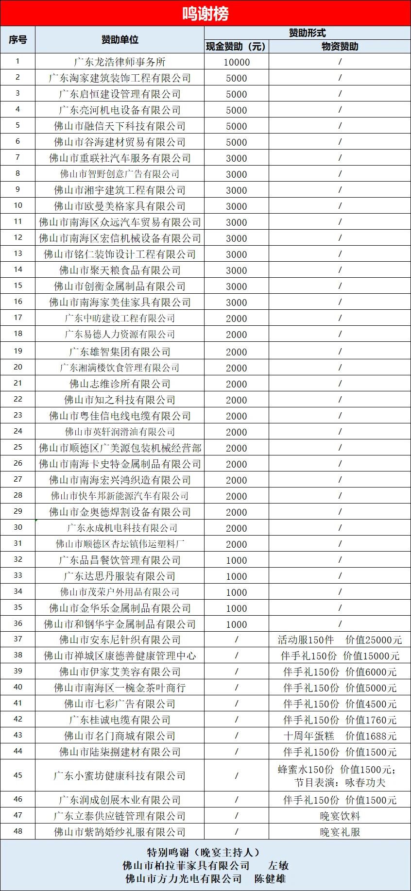 【赞助公告】佛山市企业征信建设促进会第三届第三次会员大会暨创会十周年纪念活动赞助鸣谢公告