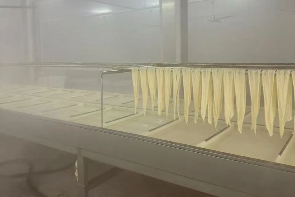 次日,游学团走进朝成企胜(始兴)绿色食品有限公司,正式开启腐竹非遗文化的深度研学之旅。始兴菽季腐竹非遗传承人游志锋亲自带队,引领大家深入生产车间,从优质大豆原料的甄选、浸泡,到腐竹的熬制、成型、晾晒,细致拆解这项非遗技艺的每一个环节,揭秘其传承百年的密码,让家长与孩子直观感受传统食品背后的匠心坚守与文化底蕴。