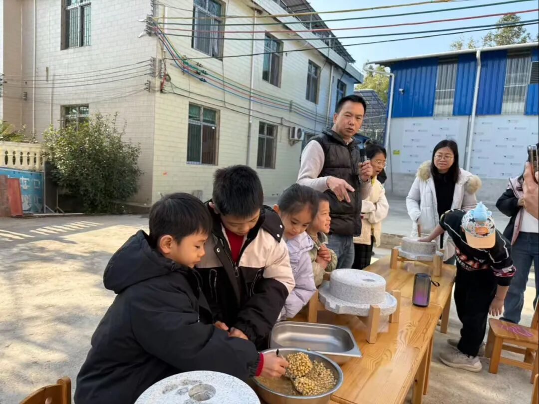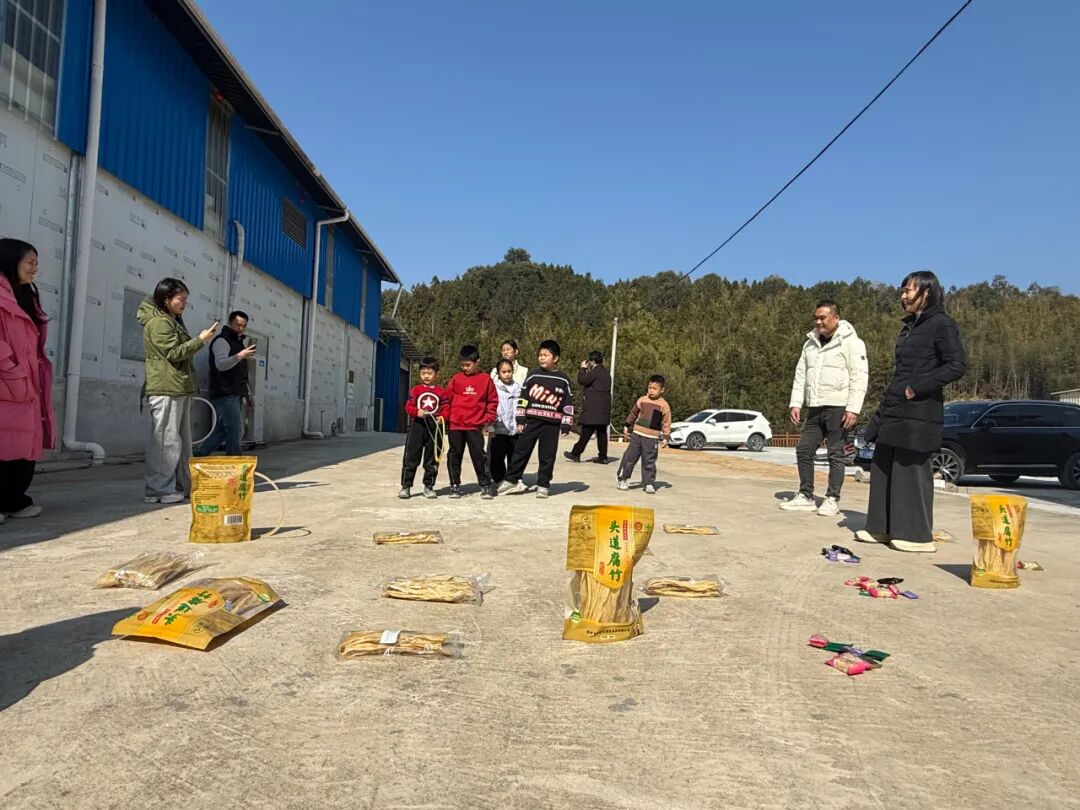 研学之余,趣味十足的亲子互动环节温情上演。磨豆浆、夹黄豆、套圈等充满烟火气的小游戏,让孩子们在动手实践中体会劳动的乐趣与不易,家长们也在欢声笑语中重拾童年记忆,亲子间的默契与情感在互动中不断升温。这场“沉浸式体验+趣味互动”的非遗研学,不仅让孩子们系统了解了传统腐竹的制作原理,更以轻松易懂的方式,拉近了亲子距离,传递了传统文化魅力。