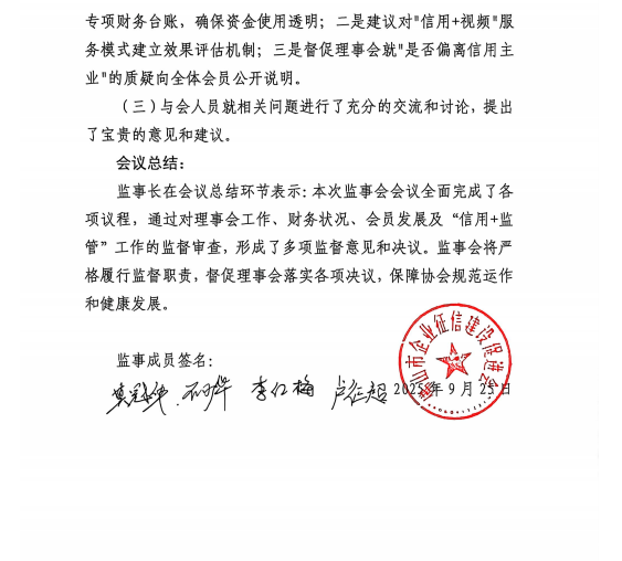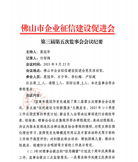 佛山市企业征信建设促进会第三届第五次监事会会议纪要