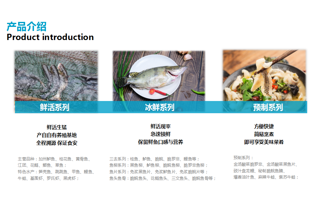 目前渔融农业科技在佛山和清远两地建有占地面积超1000多亩的标准化育苗养殖基地,其中包括1200平方米的工厂化育苗车间,另外在佛山建有5000平方米水产预制加工车间。通过集约化运营,标准化管理,订单式生产,科技化赋能,实现生产可追溯,食安有保障。